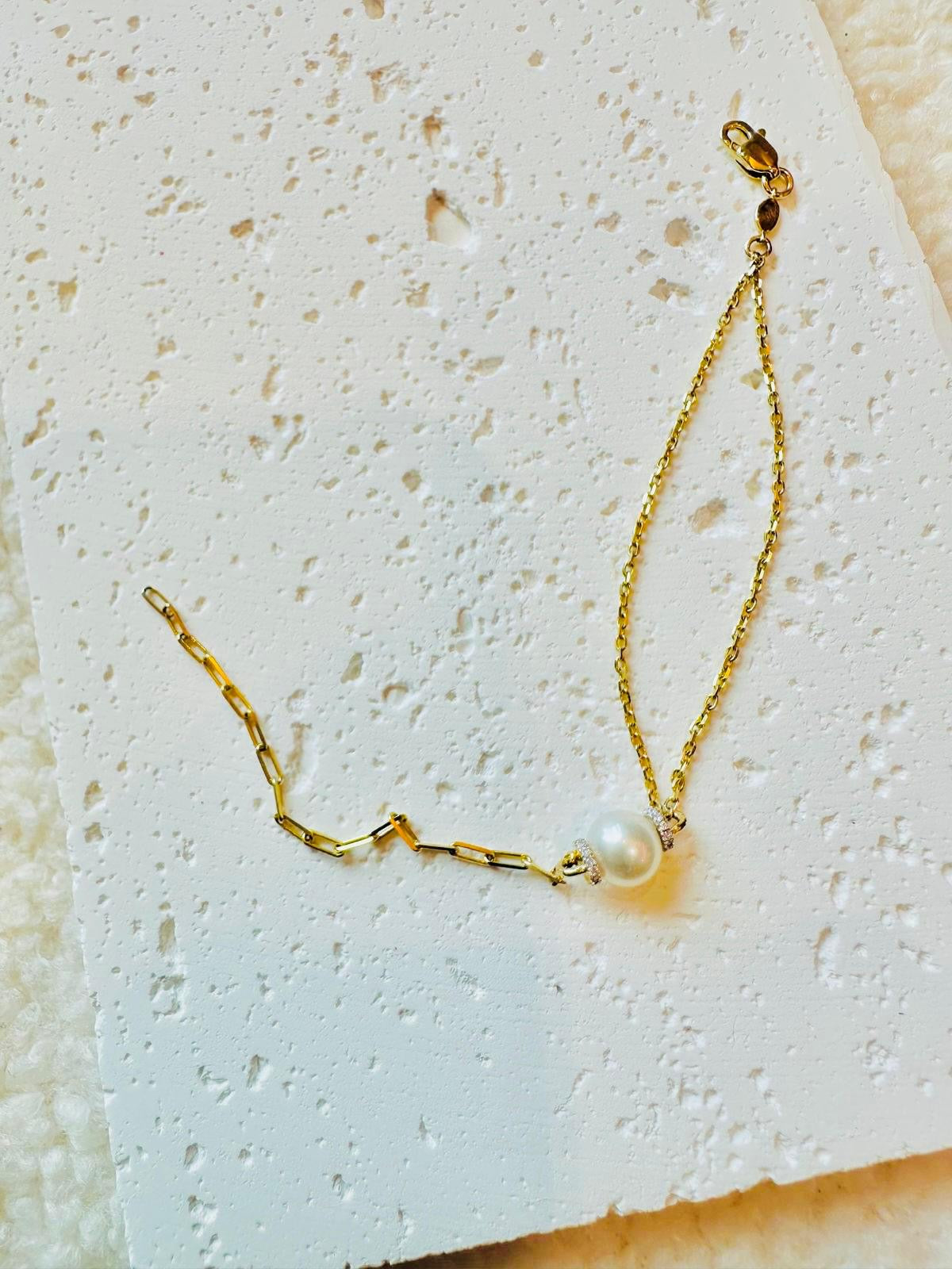 14k黃金珍珠圍碎鑽手鏈(可另加小吊飾扣)