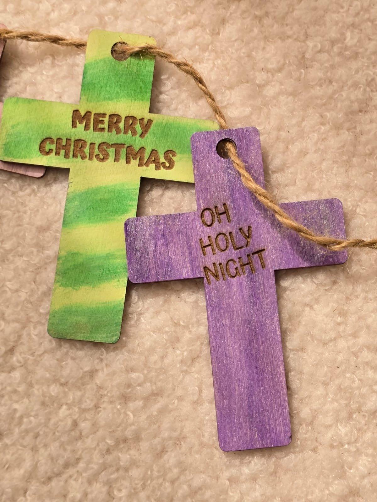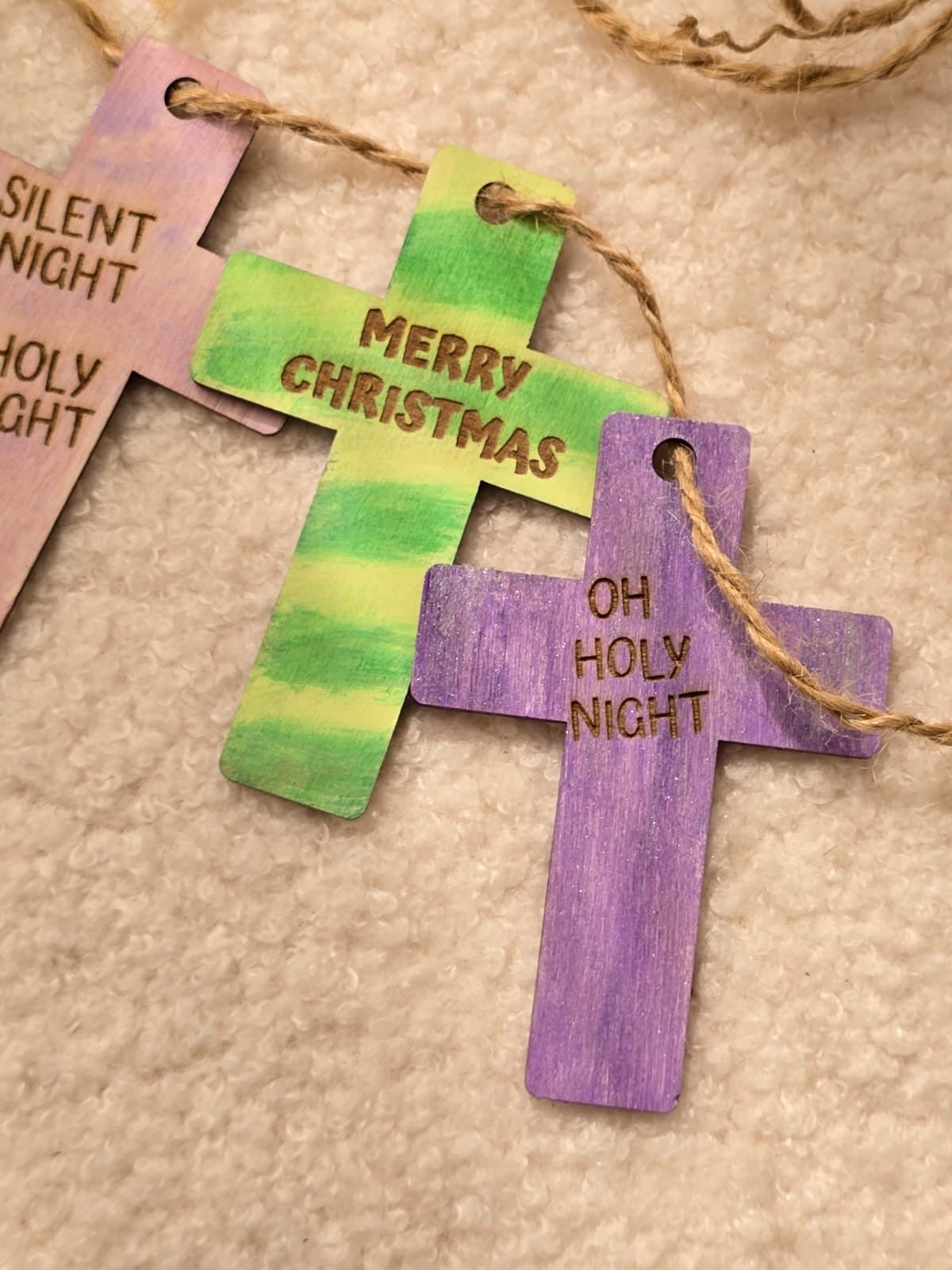 Description:A set of three miniature hand-painted crosses makes for the perfect decoration for the Christmas tree.